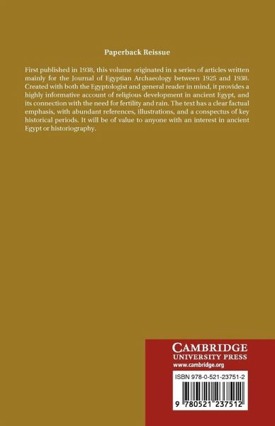 First published in 1938, this volume originated in a series of articles written mainly for the Journal of Egyptian Archaeology between 1925 and 1938. Created with both the Egyptologist and general reader in mind, it provides a highly informative account of religious development in ancient Egypt, and its connection with the need for fertility and rain. The text has a clear factual emphasis, with abundant references, illustrations, and a conspectus of key historical periods. It will be of value to anyone with an interest in ancient Egypt or historiography.