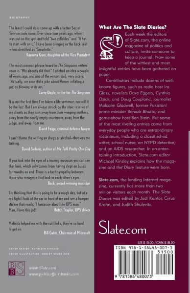 Each week the editors of Slate, one of the first and best on-line literary magazines, ask a different person to keep a diary. The Slate Diaries is a selection of some of the best of those diaries.