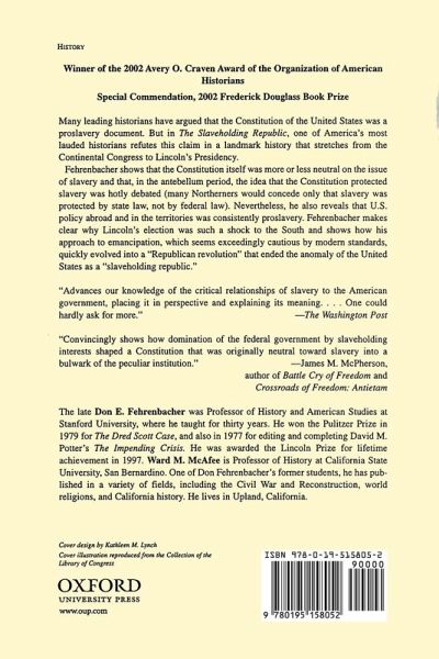 Many leading historians have argued that the Constitution of the United States was a proslavery document. But in The Slaveholding Republic, one of America's most eminent historians refutes this claim in a landmark history that stretches from the Continental Congress to the Presidency of Abraham Lincoln. Fehrenbacher shows that the Constitution itself was more or less neutral on the issue of slavery and that, in the antebellum period, the idea that the Constitution protected slavery was hotly debated (many Northerners would concede only that slavery was protected by state law, not by federal law). Nevertheless, he also reveals that U.S. policy abroad and in the territories was consistently proslavery. Fehrenbacher makes clear why Lincoln's election was such a shock to the South and shows how Lincoln's approach to emancipation, which seems exceedingly cautious by modern standards, quickly evolved into a "Republican revolution" that ended the anomaly of the United States as a "slaveholding republic." "Advances our knowledge of the critical relationships of slavery to the American government, placing it in perspective and explaining its meaning.... One could hardly ask for more."--Ira Berlin, The Washington Post