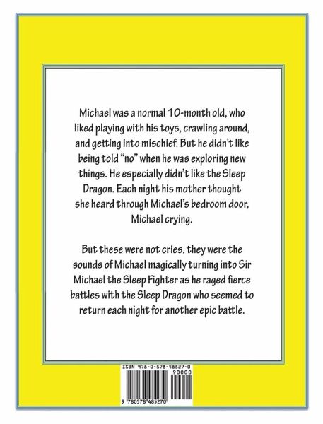 Michael was a normal 10-month old, who liked to playing with his toys, crawling around, and getting into michief. But he didn't like being told "no" when he was exploring new things. He especially didn't like the Sleep Dragon. Each night his mother thought she heard through Michael's bedroom door, Michael crying. But these were not cries, they were the sounds of Michael magically turning into Sir Michael the Sleep Fighter as he raged fierce battles with the Sleep Dragon who seemed to return each night for another epic battle.