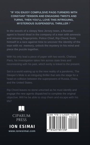 In the woods of a sleepy New Jersey town, a Russian agent is found dead in the company of a man with amnesia and missing fingerprints. Police Chief, Rip Chord, finds himself in a race against time to uncover the identity of the man with no memory, unlock the mystery in his mind and piece the puzzle together. With his only lead a piece of paper with two words, Chelsea Piers, his investigation takes him across state lines and reconnecting with his past, which eerily is linked to the present. Set in a world waking up to the new reality of a pandemic, The Sleeper's Mole is an intriguing thriller that sets the stage for a head-on collision between the superpowers of Russia, China, and the United States. Rip Chord leaves no stone unturned as he must identify and engage the new agents dispatched to complete the original objective. Will he be able to stop them and escape with his life?