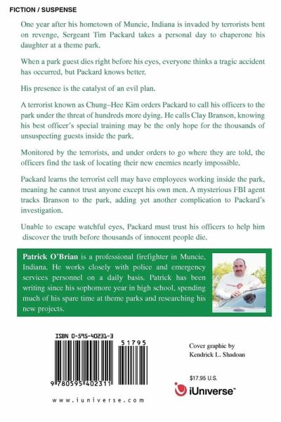 One year after his hometown of Muncie, Indiana is invaded by terrorists bent on revenge, Sergeant Tim Packard takes a personal day to chaperone his daughter at a theme park. When a park guest dies right before his eyes, everyone thinks a tragic accident has occurred, but Packard knows better. His presence is the catalyst of an evil plan. A terrorist known as Chung-Hee Kim orders Packard to call his officers to the park under the threat of hundreds more dying. He calls Clay Branson, knowing his best officer's special training may be the only hope for the thousands of unsuspecting guests inside the park. Monitored by the terrorists, and under orders to go where they are told, the officers find the task of locating their new enemies nearly impossible. Packard learns the terrorist cell may have employees working inside the park, meaning he cannot trust anyone except his own men. A mysterious FBI agent tracks Branson to the park, adding yet another complication to Packard's investigation. Unable to escape watchful eyes, Packard must trust his officers to help him discover the truth before thousands of innocent people die.