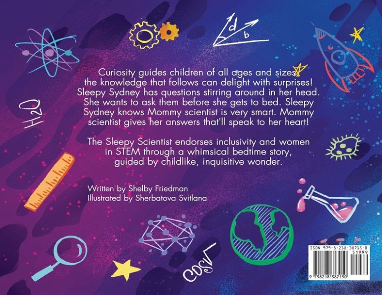 "The Sleepy Scientist" is a Children's bedtime story that encourages children to ask questions about the world around them. Sleepy Sydney asks about things she sees in her room, including the moon from her window, why she brushes her teeth, who invented her night light, and more. Mommy Scientist has the answers she seeks, covering different categories STEM such as Astronomy, Engineering, and Anatomy!