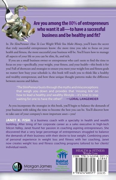 As a result of the current economic conditions, more and more Americans are joining the ranks of the small business owner, seeking to start or grow their own business. Many of these new and existing entrepreneurs are struggling with the demands of the business and making time for their family, friends, and most importantly, themselves. If you are a small business owner or entrepreneur who finds it challenging to find the time to focus on you, your weight, your fitness and your health this book is for you. In The SlimPreneur: How to Lose Weight While You Make Money, you'll learn the secrets successful entrepreneurs know, the better you take care of yourself, the more successful your business will be. Author Janet K. Fish shares the short cuts and strategies that ensure that you meet your weight loss and fitness goals no matter how busy your schedule is. You'll learn to think like a healthy and wealthy entrepreneur and how those unique thought patterns make the difference between success and failure.