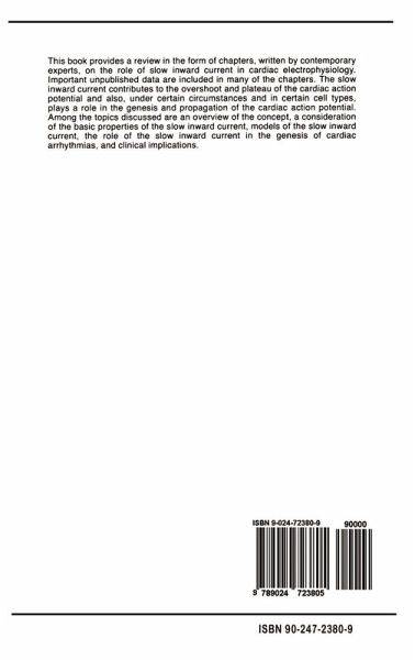 I. Overview.- 1. Historical perspective.- 2. The slow response and cardiac arrhythmias.- II. Basic Properties of the Slow Inward Current.- 3. Voltage clamp studies of the slow inward current.- 4. The slow inward current: non-voltage-clamp studies.- 5. The role of cyclic AMP in regulation of the slow inward current.- 6. The role of the slow inward current in impulse formation.- 7. Slow conduction in the heart.- 8. Slow inward current and contraction.- 9. Effects of neurotransmitters on the slow inward current.- 10. Changes in membrane electrical properties during development of the heart.- III. Models of the Slow Inward Current.- 11. The slow inward current of the rabbit sino-atrial nodal cells.- 12. The slow inward current and AV nodal propagation.- 13. The slow response in human atrium.- 14. The slow response in human ventricle.- 15. The role of electrotonus in slow potential development and conduction in canine Purkinje tissue.- 16. Voltage modulation of automaticity in cardiac Purkinje fibers.- 17. Depolarization-induced automaticity in atrial and ventricular myocardial fibers.- IV. Role of the Slow Inward Current in the Genesis of Cardiac Arrhythmias.- 18. Role of the slow current in the generation of arrhythmias in ischemic myocardium.- 19. Digitalis-induced delayed afterdepolarizations.- 20. Triggered activity.- 21. Effect of antiarrhythmic drugs on the slow inward current system.- V. Clinical Implications.- 22. The role of the slow inward current in the genesis and maintenance of supraventricular tachyarrhythmias in man.- 23. The role of the slow inward current in the genesis of ventricular tachyarrhythmias in man.