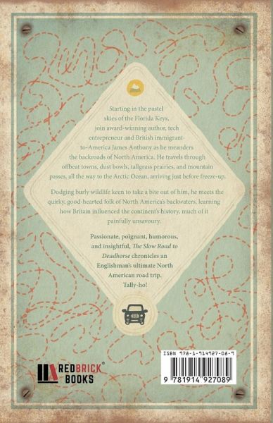 The community of Deadhorse, Alaska (population 25) lies 250 miles north of the Arctic Circle, at the northern terminus of the Pan-American Highway, the longest road in the world. Key West, Florida, sits at the southern tip of the Florida Keys, an archipelago of coral islands jutting into the Caribbean warmth of the Mexican Gulf. Between Key West and Deadhorse lies most of North America. Londoner James Anthony decided to drive between the two, adjusting his GPS settings to 'avoid highways,' letting an inanimate piece of technology guide him left-right through the byways, back roads, country lanes and mountain passes of this vast continent. Along the way, he was serenaded in an African-American Church in Miami; went peanut farming in Georgia; hitched a ferry ride across the Mississippi with moonshine-drinking locals; got drunk with a North Dakotan farmer who had three months to live; survived a haunting in Saskatchewan; was nearly squashed by an irate buffalo in the Northern Rockies; and arrived at the Arctic Ocean just before freeze-up. Part travelogue, history, social commentary, and good-time escapism, The Slow Road to Deadhorse chronicles an Englishman's road-trip through the North America most people never get to see.