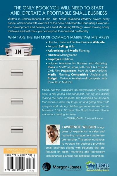 "The Small Business Planner" is the most comprehensive book available to assist entrepreneurs in avoiding costly mistakes. Starting a new business? There is a complete check list with detailed Do's and Don'ts. Do you want to generate revenue? Almost half of the book is dedicated to Marketing with tips and methodology that really work starting with the ten most common marketing mistakes. The author introduces his own unique planning model that is sure to help you gain customers and competitive advantage. Financial Management, Developing Effective Web Sites, Employee Relations, and Contingency Planning - "The Small Business Planner" has it all! Includes numerous formatted planning and financial templates on companion web site.