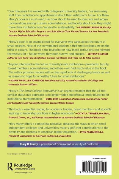 This book offers five emerging models for how small colleges can hope to survive and thrive in these very challenging times: Traditional; Integrative; Distinctive Program; Expansion, and Distributed.