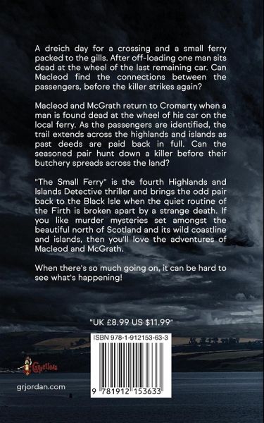A dreich day for a crossing and a small ferry packed to the gills. A fracas when offloading leads to blood and tears. And one man sits dead at the wheel of the last remaining car. Macleod and McGrath return to Cromarty when a man is found dead at the wheel of his car on the small, local ferry. As the passengers are identified, the trail extends across the highlands and islands as past deeds are paid back in full. Can the now seasoned pair hunt down a killer before their butchery spreads across the land? "The Small Ferry" is the fourth Highlands and Islands Detective thriller and brings the odd pair back to the Black Isle when the quiet routine of the Firth is broken apart by a strange death. If you like murder mysteries set amongst the beautiful north of Scotland and its wild coastline and islands, then you'll love the adventures of Macleod and McGrath. When there's so much going on, it can be hard to see what's happening!