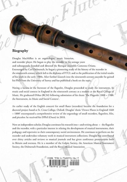 Douglas MacMillan is an organologist, music historian, and recorder player. He began to play the recorder in his teenage years and subsequently founded and directed the Baroque ensemble Camerata Oriana. Encouraged by Carl Dolmetsch, he began a pioneering study of the history of the recorder in the nineteenth century which led to the diploma of FTCL and to the publication of the initial results of his work in the early 1980s. After further research into the nineteenth-century recorder he gained his PhD from the University of Surrey and has published a book on the topic. Noting a lacuna in the literature of the flageolet, Douglas proceeded to study the instrument, its music and social context in England in the nineteenth century as a student at the Royal College of Music. He graduated DMus (RCM) following submission of his thesis ‘The Flageolet 1800 – 1900: the Instrument, its Music and Social Context’. An earlier study of the English concerti for small flutes (recorders) became the foundation for a doctoral project based at St. Cross College, Oxford. Douglas’ thesis ‘Octave Flutes in England 1660 – 1800’ encompassed a comprehensive review of the organology of small recorders, flageolets, fifes, and piccolos: he received his DPhil (Oxon) in 2018. Now an independent scholar, Douglas continues his research into – and writing about – the flageolet and the recorder, with a particular interest in relating the development of musical instruments, their pedagogy and repertoire to their contemporary social environment. He continues to perform on the recorder and undertakes voluntary work in musical instrument collections. Douglas has contributed over thirty articles and reviews to musical journals and has given conference presentations both in Britain and overseas. He is a member of the Galpin Society, the American Musical Instrument Society, the Dolmetsch Foundation, and the Royal Musical Association.