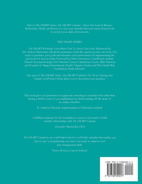The SMART Calendar: Achieve Your Goals In Business, Relationships, Health, and Recovery is a one-year calendar that uses science-based tools to monitor your daily achievements. Part of The SMART Series, The SMART Workbook: Science-Based Tools To Achieve Your Goals helps your prioritize your goals and maximize your performance by implementing science-based protocols for success.