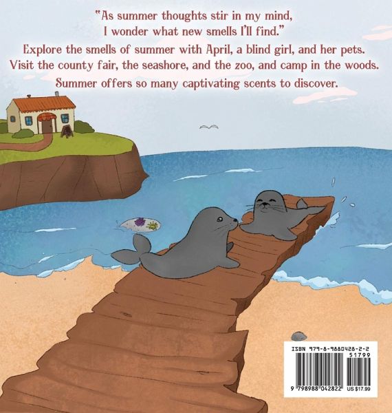 A Smells of the Seasons Book A blind girl experiences the season through her nose. As summer thoughts stir in my mind, I wonder what new smells I'll find. Since noses surely help us see, What special scents will call to me? April, a blind girl, explores the many smells of summer in this delightful rhyming picture book. From her garden to the county fair, to Grandpa's farm, to camping in the forest, to a family barbecue and a holiday picnic, to visiting the animals in the zoo and enjoying the seashore, discover the joys of summer scents. The Smell of Summer helps children understand how we experience the world around us through the sense of smell. Kids will enjoy April's interesting pets and have fun with the activities at the end of the book using their sense of smell.