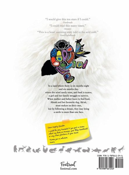 In a land where there is six months night and six months day, where the wind rarely rests, and food is scarce, a girl and her family struggle to survive. When mother and father leave to find food, Ahnah and her favourite dog, Akiak, must endure on their own, but by following a dream, they may bring a smile to more than one face.