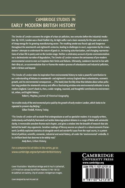 Prologue: the smoke of London Part I. Transformations: 1. The early modernity of London 2. Fires: London's turn to coal, 1575-1775 3. Airs: smoke and pollution, 1600-1775 Part II. Contestations: 4. Royal spaces: palaces and brewhouses, 1575-1640 5. Nuisance and neighbours 6. Smoke in the scientific revolution Part III. Fueling Leviathan: 7. The moral economy of fuel: coal, poverty, and necessity 8. Fueling improvement: development, navigation, and revenue 9. Regulations: policing markets and suppliers 10. Protections: the wartime coal trade Part IV. Accommodations: 11. Evelyn's place: fumifugium and the royal retreat from urban smoke 12. Representations: coal smoke as urban life 13. Movements: avoiding the smoky city Epilogue Bibliography Index.