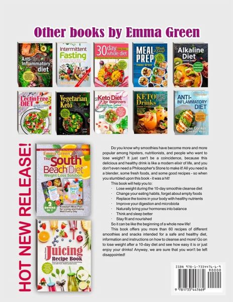 Revitalize your body and your health with a cleanse you'll enjoyDo you know why smoothies have become more and more popular among hipsters, nutritionists, and people who want to lose weight? It just can't be a coincidence, because this delicious and healthy drink is like a modern elixir of life, and you don't even need a Philosopher's Stone to make it! All you need is a blender, some fresh foods, and some good recipes - so when you stumbled upon this book - it was a hit!This book will help you to:Lose weight during the 10-day smoothie cleanse diet Change your eating habits, forget about empty foods Replace the toxins in your body with healthy nutrients Improve your digestion and microbiota Naturally bring your hormones into balance Think and sleep better Stay fit and nourished So it can be like the beginning of a whole new life! This book offers you more than 70 recipes of different smoothies and snacks intended for a safe and healthy diet, information and instructions on how to cleanse and more! Go on to lose weight after a 10-day diet and see how easy it is or just enjoy your drinks! Anyway, we are sure that you won't be left disappointed!