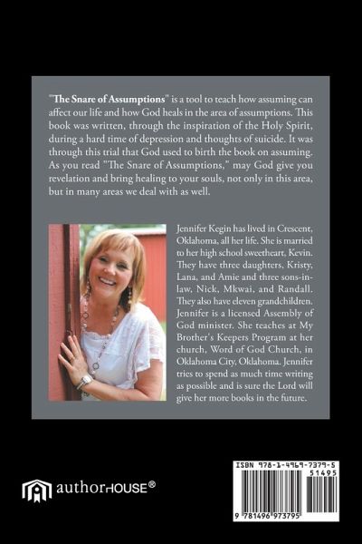 "The Snare of Assumptions" is a tool to teach how assuming can affect our life and how God heals in the area of assumptions. This book was written, through the inspiration of the Holy Spirit, during a hard time of depression and thoughts of suicide. It was through this trial that God used to birth the book on assuming. As you read "The Snare of Assumptions," may God give you revelation and bring healing to your souls, not only in this area, but in many areas we deal with as well.