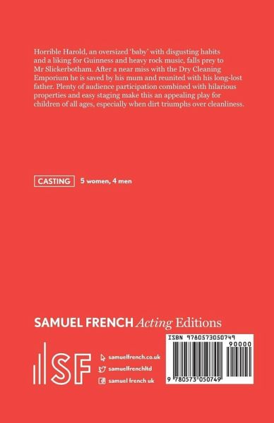 Horrible Harold, an oversized 'baby' with disgusting habits and a liking for Guinness and heavy rock music, falls prey to Mr Slickerbotham. After a near miss with the Dry Cleaning Emporium he is saved by his mum and reunited with his long-lost father. Plenty of audience participation combined with hilarious properties and easy staging make this an appealing play for children of all ages, especially when dirt triumphs over cleanliness.-5 women, 4 men