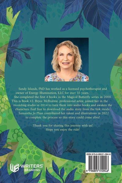 Synopsis: The Sneaky Snake is book 2 in the Magical Butterfly series. The snake has an attitude of entitlement and selfishness. He encounters Faith the Butterfly from book 1, The Complaining Caterpillar and decides to change his life and along with that gets a new name and attitude. Autobiography: Sandy Islands, PhD has worked as a licensed psychotherapist and owner of Energy Illumination, LLC for over 35 years. She completed the first 4 books in the Magical Butterfly series in 2000. This is Book #2. Bryce McBratnie, a professional actor, joined her in the recording studio in 2014 to turn them into audiobooks and awaken the characters. Feel free to download the audio story from the link inside. Samantha Jo Phan contributed her talent and illustrations in 2022 to complete the process so this story could come alive! Thank you for sharing this journey with us! Hope you enjoy the ride! Hope you enjoy the ride!