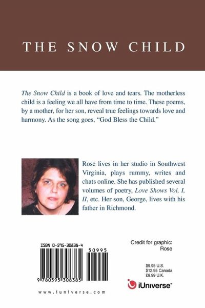 The Snow Child is a book of love and tears. The motherless child is a feeling we all have from time to time. These poems, by a mother, for her son, reveal true feelings towards love and harmony. As the song goes, "God Bless the Child."