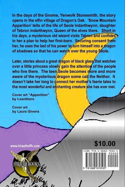 In the days of the Gnome, Yenwolk Stonesmith, the story opens in the elfin village of Dragon's Oak. 'Snow Mountain Apparition' tells of the life of Seole Indarthwynn, daughter of Tebron Indarthwynn, Queen of the elves there. Short in his days, a mysterious, old wizard visits Tebron in the night and confides in her a plan to help her first born. Securing consent from her, he uses the last of his power to turn himself into a dragon of shadows so that he can watch over the young Seole. Later, stories about a great dragon of black glass that watches over a little princess slowly gain the attention of the people who live there. The teen Seole becomes more and more aware of the mysterious dragon some call the Neither. It doesn't take her long to connect her mother's faerie tales to the most wonderful and enchanting creature she has ever met.