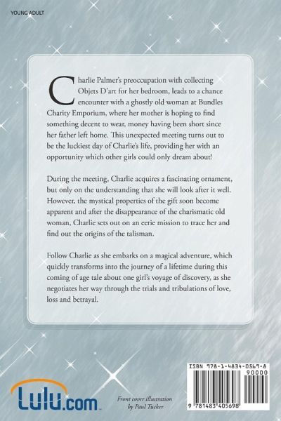 Charlie Palmer's preoccupation with collecting Objets D'art for her bedroom, leads to a chance encounter with a ghostly old woman at Bundles Charity Emporium, where her mother is hoping to find something decent to wear, money having been short since her father left home. This unexpected meeting turns out to be the luckiest day of Charlie's life, providing her with an opportunity which other girls could only dream about! Follow Charlie as she embarks on a magical adventure, which quickly transforms into the journey of a lifetime during this coming of age tale about one girl's voyage of discovery, as she negotiates her way through the trials and tribulations of love, loss and betrayal.