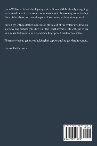 Jason Williams didn't think going out to dinner with his family was going to be any different than usual. Comments about his sexuality, some teasing from his brothers, and lots of paparazzi. You know, nothing strange at all. But a fight with his father made Jason storm out of the restaurant, down an alleyway, and suddenly his life isn't the usual anymore. He woke up in an unfamiliar dark room, and a handsome boy opened his door to explain. The snowy-haired genius was holding him captive until he got what he wanted. Life couldn't be worse.