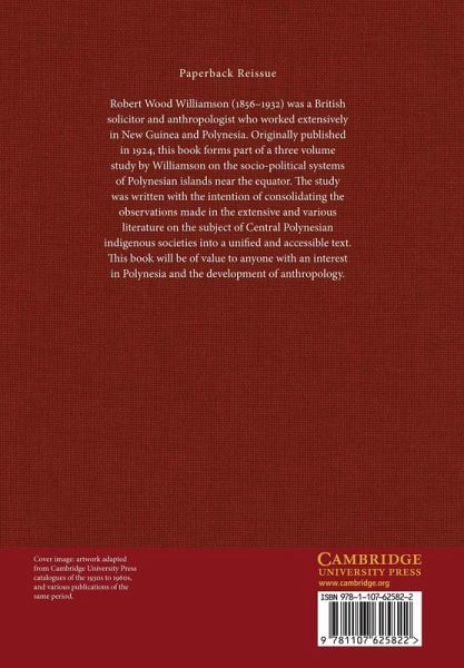 Robert Wood Williamson (1856-1932) was a British solicitor and anthropologist who worked extensively in New Guinea and Polynesia. Originally published in 1924, this book forms part of a three-volume study by Williamson on the socio-political systems of Polynesian islands near the equator. The study was written with the intention of consolidating the observations made in the extensive and various literature on the subject of Central Polynesian indigenous societies into a unified and accessible text. This book will be of value to anyone with an interest in Polynesia and the development of anthropology.