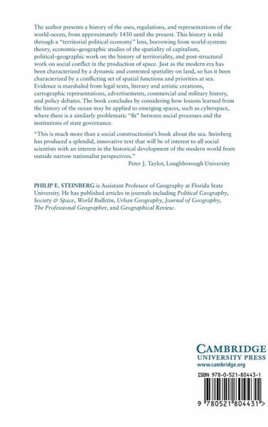 This 2001 book presents a history of the uses, regulations and representation of the world-ocean, from approximately 1450 through the present. This history is told through a 'territorial political economy' lens, borrowing from world-systems theory, economic-geographic studies of the spatiality of capitalism, political-geographic work on the history of territoriality, and post-structural work on social conflict in the production of space. Just as the modern era has been characterized by a conflicting set of dynamic and contested spatiality on land, so has it been characterized by a conflicting set of spatial functions at sea. Evidence is marshaled from legal texts, literary and artistic creations, cartographic representations, advertisements, commercial and military history, and policy debates. The book concludes by considering how lessons learned from the history of the ocean may be applied to emerging spaces, such as cyberspace, where there is a similarly problematic 'fit' between social processes and the institutions of state governance.