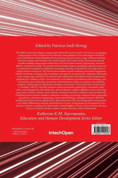 This edited volume investigates young people within their social contexts. The focus is on engaging young people as they transition from youth into young adulthood. Key advantages of this book are its embodiment of interdisciplinarity in gathering research across a range of diverse methods, theories, settings, and countries. The volume begins with reviews of key theories and methods in understanding young people within their social networked contexts of generosity, networks, identity, and ethnic heritage. The second section includes chapters attending to education and work as contexts for transitions to adulthood, counseling, meaning, and aesthetics from high school to college and into workplaces. The third section includes chapters studying community engagement and the well-being of young people, including social support, meaning in life, religiosity, spirituality, stress coping, yoga, and sports. The diverse topics addressed in this edited volume are generosity, philanthropy, voluntary action, social networks, social identity, personhood, ethnic heritage, post-colonialism, intersectionality, personality, lived experiences, informal economy, sustainability, pandemic, family support, educational counselors, motivation, ?Not in Education, Employment, or Training? (NEET), everyday aesthetics, built environment, generativity, community, adult allies, youth engagement, life satisfaction, spiritual identity, religious affiliation, stress, practicing yoga, sexual violence, athletes, sports climate, pressures to perform, resilience, and neurodiversity. Disciplines span economics, business, education, sociology, psychology, medical science, geography, journalism, architecture, engineering, science and technology, and applied sciences. Methods include quantitative surveys, qualitative in-depth interviews, life course biographies, ethnographic case studies, bibliometric analysis, and integrative reviews. Young people are investigated across thirteen countries, including the United States, United Kingdom, Yemen, Ghana, Bahrain, Norway, Denmark, Finland, Sweden, Iceland, Canada, Romania, and the Netherlands.