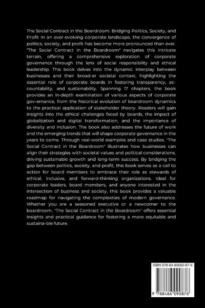 The Social Contract in the Boardroom: Bridging Politics, Society, and Profit In today's volatile world, the boardroom is no longer just a place for financial decisions-it's a crucible where ethics, equity, and enterprise collide. The Social Contract in the Boardroom is a powerful call to reimagine corporate governance as a force for societal good. This book dives deep into the evolving role of boards, revealing how political pressures, social expectations, and profit motives are converging to reshape leadership at the highest levels. Across 17 thought-provoking chapters, readers journey through the historical roots of boardroom power, the rise of stakeholder capitalism, and the ethical dilemmas that define modern governance. From globalization and digital disruption to diversity, inclusion, and the future of work, this book equips leaders with the tools to navigate complexity with courage and clarity. Through vivid case studies and real-world examples, The Social Contract in the Boardroom shows how companies can align strategy with values-building trust, driving innovation, and creating lasting impact. It's not just about doing business better-it's about doing business right. Whether you're a seasoned board member, an aspiring executive, or a changemaker at heart, this book offers a roadmap for leading with integrity in a world that demands more.