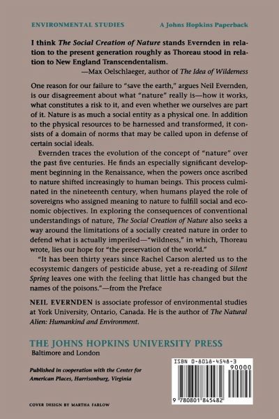 "I think The Social Creation of Nature stands Evernden in relation to the present generation roughly as Thoreau stood in relation to New England Transcendentalism."--Max Oelschlaeger, author of The Idea of Wilderness. "A thoughtful and illuminating book... For Evernden, wildness' is what should be defended and preserved."--New Scientist. One reason for our failure to "save the earth," argues Neil Evernden, is our disagreement about what "nature" really is--how it works, what constitutes a risk to it, and even whether we ourselves are part of it. Nature is as much a social entity as a physical one. In addition to the physical resources to be harnessed and transformed, it consists of a domain of norms that may be called upon in defense of certain social ideals. In exploring the consequences of conventional understandings of nature, The Social Creation of Nature also seeks a way around the limitations of a socially created nature in order to defend what is actually imperiled--"wildness," in which, Thoreau wrote, lies hope for "the preservation of the world."