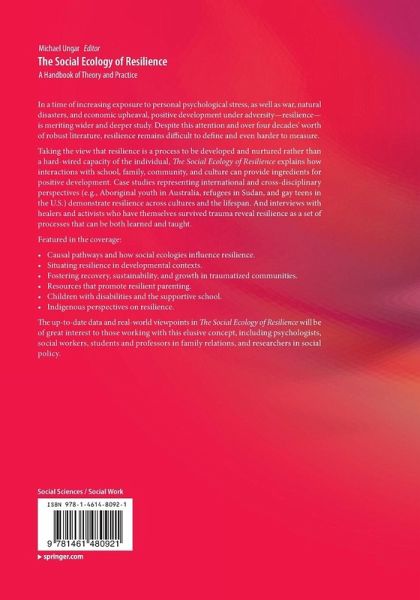 More than two decades after Michael Rutter (1987) published his summary of protective processes associated with resilience, researchers continue to report definitional ambiguity in how to define and operationalize positive development under adversity. The problem has been partially the result of a dominant view of resilience as something individuals have, rather than as a process that families, schools,communities and governments facilitate. Because resilience is related to the presence of social risk factors, there is a need for an ecological interpretation of the construct that acknowledges the importance of people's interactions with their environments. The Social Ecology of Resilience provides evidence for this ecological understanding of resilience in ways that help to resolve both definition and measurement problems.