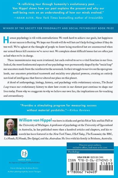 An engrossing exploration of how the last six million years of human evolution have forged our modern lives — from work and relationships to leadership and innovation and, above all, our quest for happiness Human psychology is rife with contradictions: We work hard to achieve our goals, but when we succeed, our happiness is fleeting compared with our efforts. We hope our friends will do well in life but can’t help but feel jealous if they do too well. We’re aghast at the thought of people we know being murdered, even if we despise them, but are unconcerned when our armed forces kill enemies who are strangers to us. We complain about difficult bosses but are often just as bad when we’re in charge. These inconsistencies may seem irrational, but each of them has evolved to serve a vital function in our lives. Indeed, the most fundamental aspects of our psychology were permanently shaped by the “social leap” our ancestors made from the rainforest to the savannah. In their struggle to survive on the open grasslands, our ancestors prioritized teamwork and sociality over physical prowess, creating an entirely new kind of intelligence that would forever alter our place on this planet. In The Social Leap, leading psychologist William von Hippel traces our evolutionary history to show how events in our distant past continue to shape our lives today. From the everyday, such as why we exaggerate, to the exotic, such as why we believe our own lies, the implications are far-reaching and extraordinary. Blending anthropology, biology, history, and psychology with evolutionary science, The Social Leap is a fresh, provocative look at our species that provides new clues about who we are, why we do what we do, and how to live the good life.