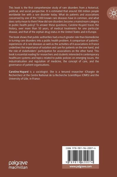 The book shows that public authorities had a much greater role than biomedicine in turning rare disorders into a public health problem. A comparison of patients' experiences of 6 rare diseases as well as the activities of 8 associations in France underlines the importance of isolation and care for patients on the one hand, and the role of stakeholders' participation for associations on the other hand. This book is essential reading for researchers and students interested in contemporary healthcare systems and topics related to public policies on emerging issues, the industrialisation and regulation of medicine, the concept of care, and the governance of patient organisations.
