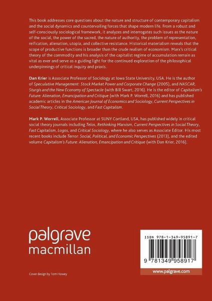 This book addresses core questions about the nature and structure of contemporary capitalism and the social dynamics and countervailing forces that shape modern life. From a robust and self-consciously sociological framework, it analyzes and interrogates such issues as the nature of the social, the power of the sacred, the nature of authority, the problem of representation, reification, alienation, utopia, and collective resistance. Historical materialism reveals that the scope of productive functions is broader than the crude realism of economism. Marx's critical theory of the commodity and his analysis of the capitalist regime of accumulation remain as vital as ever and serve as a guiding light for the continued exploration of the philosophical underpinnings of critical inquiry and praxis.