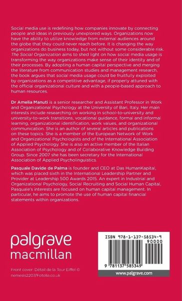 The Social Organization sheds light on how social media usage is transforming the way organizations make sense of their identity and processes. By adopting a human capital perspective and merging research from communication studies and management, it argues that social media could be fruitfully exploited by organizations as a competitive advantage.