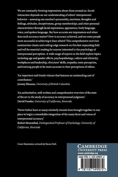 We are constantly forming impressions about those around us. Social interaction depends on our understanding of interpersonal behavior - assessing one another's personality, emotions, thoughts and feelings, attitudes, deceptiveness, group memberships, and other personal characteristics through facial expressions, body language, voice and spoken language. But how accurate are our impressions and when does such accuracy matter? How is accuracy achieved and are some of us more successful at achieving it than others? This comprehensive overview presents cutting-edge research on this fast-expanding field and will be essential reading for anyone interested in the psychology of interpersonal perception. A wide range of experts in the field explore topics including age and gender effects, psychopathology, culture and ethnicity, workplaces and leadership, clinicians' skills, empathy, meta-perception, and training people to be more accurate in their perceptions of others.