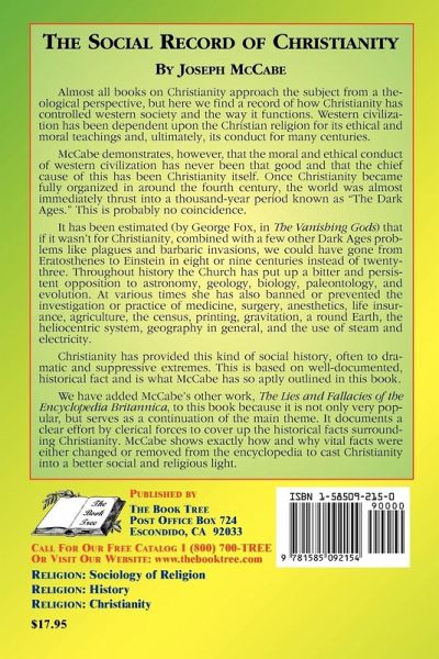 Throughout history, the Christian Church has put up a bitter and persistent opposition to astronomy, geology, biology, paleontology and evolution and has banned or prevented the investigation or practice of medicine, life insurance, agriculture, the census, printing, and the use of steam and electricity. This social history of repression is explored in McCabe's well-documented book.