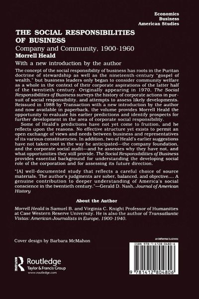 The concept of the social responsibility of business has roots in the Puritan doctrine of stewardship as well as the nineteenth-century "gospel of wealth," but business leaders only began to consider community welfare as a whole in the context of their corporate aspirations of the latter half of the twentieth century. Originally appearing in 1970, The Social Responsibilities of Business surveys the history of corporate actions in pursuit of social responsibility, and attempts to assess likely developments. Reissued in 1988 by Transaction with a new introduction by the author and now available in paperback, the volume provides Morrell Heald the opportunity to evaluate his earlier predictions and identify prospects for further development in the area of corporate social responsibility. Some of Heald's predictions have not yet come to fruition, and he reflects upon the reasons. No effective structure yet exists to permit an open exchange of views and needs between business and representatives of its various constituencies. In addition, two of Heald's earlier suggestions have not taken root in the way he anticipated--the company foundation, and the corporate social audit--and he assesses why they have not, and what opportunities they still provide. The Social Responsibilities of Business provides essential background for understanding the developing social role of the corporation and for assessing its future direction.
