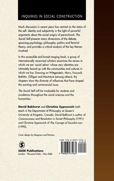 Introduction - David Bakhurst and Christine Sypnowich Problems of the Social Self Meaning and Self in Cultural Perspective - Jerome Bruner Wittgenstein and Social Being - David Bakhurst What a Vygotskian Perspective Can Contribute to Contemporary Philosophy of Language - Ellen Watson The Soviet Self - Felix Mikhailov A Personal Reminiscence Death in Utopia - Christine Sypnowich Marxism and the Mortal Self The Social Self in Political Theory - Stephen Mulhall and Adam Swift The Communitarian Critique of the Liberal Subject The Gendered Self - Diana Coole Becoming Women/Women Becoming - Helene Keyssar Film and the Social Construction of Gender Why Multiple Personality Tells Us Nothing about the Self/Mind/Person/Subject/Soul/Consciousness - Ian Hacking