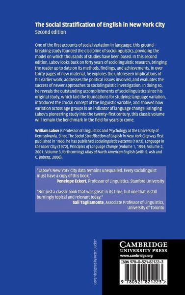 One of the first accounts of social variation in language, this groundbreaking study founded the discipline of sociolinguistics, providing the model on which thousands of studies have been based. In this second edition, Labov looks back on forty years of sociolinguistic research, bringing the reader up to date on its methods, findings and achievements. In over thirty pages of new material, he explores the unforeseen implications of his earlier work, addresses the political issues involved, and evaluates the success of newer approaches to sociolinguistic investigation. In doing so, he reveals the outstanding accomplishments of sociolinguistics since his original study, which laid the foundations for studying language variation, introduced the crucial concept of the linguistic variable, and showed how variation across age groups is an indicator of language change. Bringing Labov's pioneering study into the 21st century, this classic volume will remain the benchmark in the field for years to come.