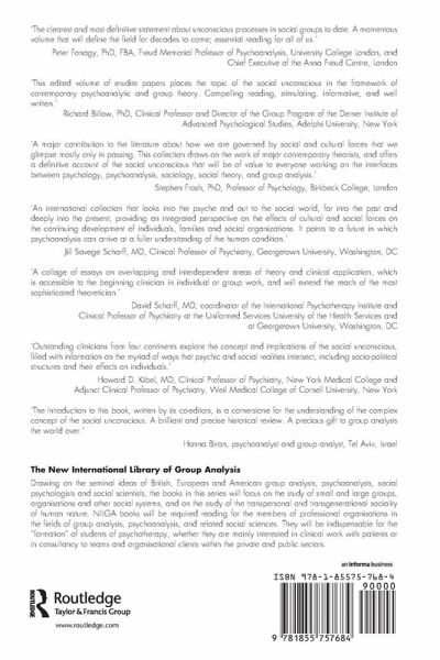 Foreword , Introduction , The Origins of the Concept of the Social Unconscious , The concept of the social unconscious in the work of S. H. Foulkes , The concept of the co-unconscious in Moreno's psychodrama , Enrique Pichon-Rivière: the social unconscious in the Latin-American tradition of group analysis , The Organismic and Neurobiological Perspective , Introduction , Mirror neurons, sociality, and the species homo sapiens , The group mind, systems-centred functional subgrouping, and interpersonal neurobiology , The Relational and Interpersonal Perspective , Introduction , Working intersubjectively: what does it mean for theory and therapy? , The lost roots of the theory of group analysis: "interrelational individuals" or "persons" , The Mind of the Social System , Introduction , The false we/the false collective self: a dynamic part of the social unconscious , Manifestations of psychic retreats in social systems , The Matrix of the Social System , Introduction , The social unconscious and ideology: in clinical theory and practice , The foundation matrix and the social unconscious , The Numinous and the Unknown , Introduction , The social unconscious and the collective unconscious: the Jungian perspective , Intuiting knowledge from the social unconscious with special reference to social dreaming