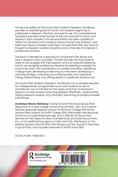 This second edition of The Social Work Student's Research Handbook provides an essential guide for social work students beginning to participate in research. Practical and easy to use, this comprehensive handbook provides instant access to the nuts and bolts of social work research. Each chapter in this second edition has been updated to reflect the dynamic and changing nature of social work research, and three new topical chapters have been included that offer new food for thought on research context and ethics and on the role of evidence in professional practice. The book is intended as a resource to complement the dense and heavy research books available. This text provides the tools students need to fully engage with their research and is an essential reference aid for use alongside professional literature for selecting a problem for social work study with consideration of context and ethics; identifying a design type; developing or selecting an instrument; developing a sampling strategy; collecting and analyzing data; and organizing, writing, disseminating, and utilizing results in a politically sensitive way. The Social Work Student's Research Handbook is an invaluable resource for undergraduate and graduate social work students as well as practitioners new to the field as they apply what they've learned in research courses toward consuming research effectively, implementing original research projects, and ultimately, toward becoming an evidence-based practitioner.