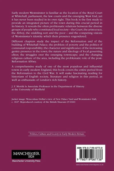 This book is the first study to provide an integrated picture of Westminster during this crucial period in its history. It reveals the often problematic relations between the diverse groups of people who constituted local society - the Court, the aristocracy, the Abbey, the middling sort and the poor - and the competing visions of Westminster's identity which their presence engendered. Different chapters study the impact of the Reformation and of the building of Whitehall Palace; the problem of poverty and the politics of communal responsibility; the character and significance of the increasing gentry presence in the town; the nature and ideology of local governing elites; the struggles over the emerging townscape; and the changing religious culture of the area, including the problematic role of the post-Reformation Abbey. A comprehensive study of one of the most populous and influential towns in early modern England, this book covers the entire period from the Reformation to the Civil War. It will make fascinating reading for historians of English society, literature and religion in this period, as well as enthusiasts of London's rich history.