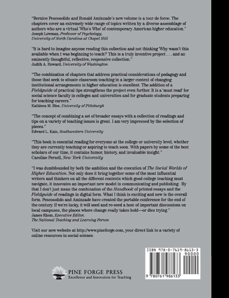 Teaching for What and for Whom? The Social Worlds and Structural Paradoxes of the University at the End of the 20th Century - Bernice A Pescosolido and Ronald Aminzade PART ONE: SURVEYING THE SOCIAL LANDSCAPE OF HIGHER EDUCATION AT THE END OF THE 20TH CENTURY: PRESSURES FROM THE OUTSIDE The Debate - Gene I Maeroff College Teachers, the New Leisure Class Introduction to the Changing Landscape of Higher Education - Ronald Aminzade and Bernice A Pescosolido The Changing Character of College - Craig Calhoun Institutional Transformation in American Higher Education Higher Education and Its Social Contracts - Teresa Sullivan How the Academic Profession is Changing - Arthur Levine Small Worlds, Different Worlds - Burton R Clark The Uniqueness and Troubles of American Academic Professions The Changing Classroom - Charles S Green III and Dean S Dorn The Meaning of Shifts in Higher Education for Teaching and Learning PART TWO: MAPPING ISSUES IN THE SOCIAL WORLDS OF HIGHER EDUCATION: ARGUMENTS FROM THE INSIDE The Debate - Mark Edmundson On the Uses of a Liberal Education - As Lite Entertainment for Bored College Students The War of the Worlds - Diane F Halpern Why Psychology Helps Bridge the Gap Between Students