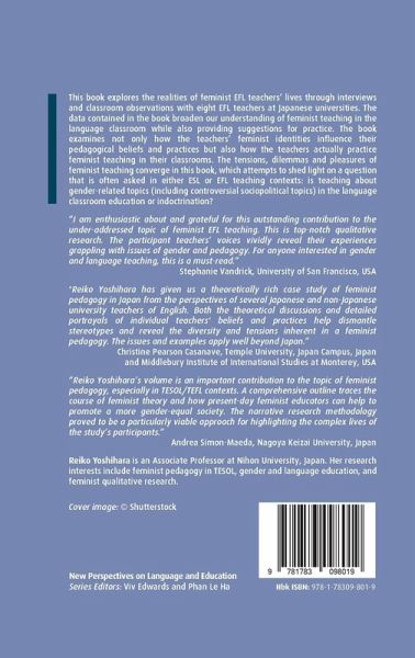 This book explores the realities of feminist EFL teachers' lives through interviews and classroom observations with eight EFL teachers at Japanese universities. The data contained in the book broaden our understanding of feminist teaching in the language classroom while also providing suggestions for practice.