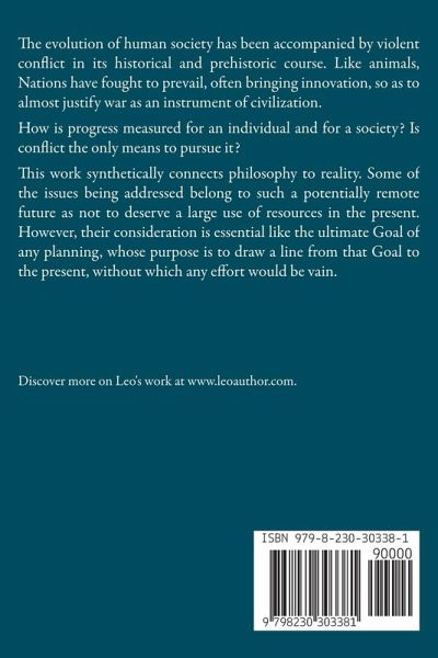 The evolution of human society has been accompanied by violent conflict in its historical and prehistoric course. Like animals, Nations have fought to prevail, often bringing innovation, so as to almost justify war as an instrument of civilization. How is progress measured for an individual and for a society? Is conflict the only means to pursue it? This work synthetically connects philosophy to reality. Some of the issues being addressed belong to such a potentially remote future as not to deserve a large use of resources in the present. However, their consideration is essential like the ultimate Goal of any planning, whose purpose is to draw a line from that Goal to the present, without which any effort would be vain.