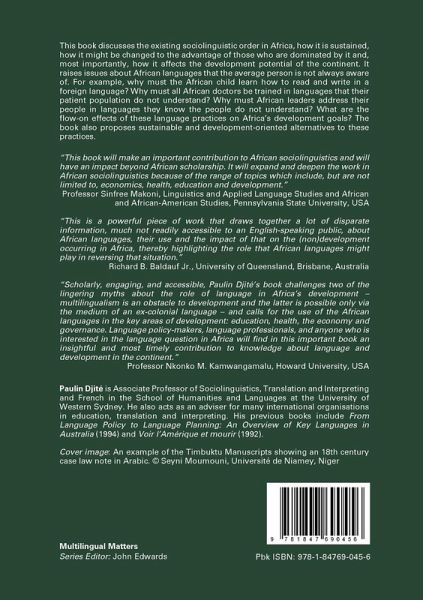 This book is an analysis of modernisation informed by the place of language in education, health, the economy and governance in the African context. It paints a wide canvas of Africa in its different facets, and shows how language is used as an instrument to deny access to socioeconomic and political emancipation.