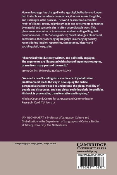 Human language has changed in the age of globalization: no longer tied to stable and resident communities, it moves across the globe, and it changes in the process. The world has become a complex 'web' of villages, towns, neighbourhoods and settlements connected by material and symbolic ties in often unpredictable ways. This phenomenon requires us to revise our understanding of linguistic communication. In The Sociolinguistics of Globalization Jan Blommaert constructs a theory of changing language in a changing society, reconsidering locality, repertoires, competence, history and sociolinguistic inequality.