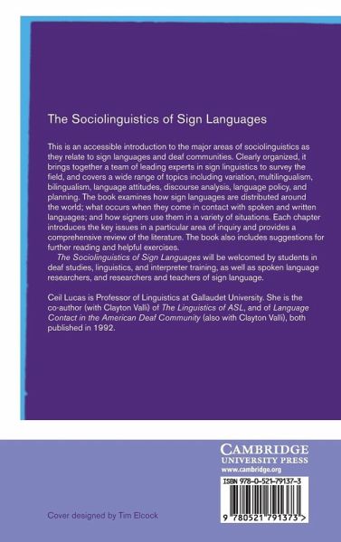 This is an accessible introduction to the major areas of sociolinguistics as they relate to sign languages and deaf communities. Clearly organised, it brings together a team of leading experts in sign linguistics to survey the field, and covers a wide range of topics including variation, multilingualism, bilingualism, language attitudes, discourse analysis, language policy and planning. The book examines how sign languages are distributed around the world; what occurs when they come in contact with spoken and written languages; and how signers use them in a variety of situations. Each chapter introduces the key issues in each area of inquiry and provides a comprehensive review of the literature. The book also includes suggestions for further reading and helpful exercises. The Sociolinguistics of Sign Languages will be welcomed by students in deaf studies, linguistics and interpreter training, as well as spoken language researchers, and researchers and teachers of sign language.